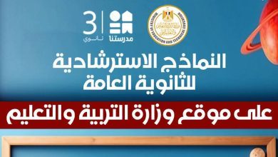 وزارة التربية والتعليم تطرح النماذج الاسترشادية لامتحانات الثانوية العامة على موقعها الإلكتروني بداية من مساء اليوم السبت مع إتاحة حلها عبر قناة “مدرستنا٣”