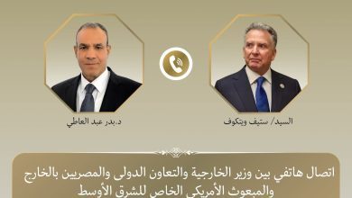 كتب: ايمن علام تلقى د. بدر عبد العاطي وزير الخارجية والتعاون الدولي والمصريين بالخارج اتصالا…