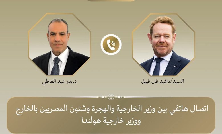 جرى اتصال هاتفي بين د. بدر عبد العاطي وزير الخارجية والهجرة وشئون المصريين بالخارج، والسيد “دافيد فان فييل” وزير خارجية هولندا اليوم ، لبحث العلاقات الثنائية ولتناول التطورات في قطاع غزة.