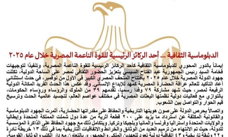 الدبلوماسية الثقافية… أحد الركائز الرئيسية للقوة الناعمة المصرية خلال عام ٢٠٢٥