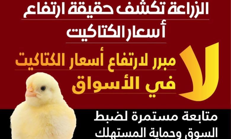 أكدت وزارة الزراعة واستصلاح الأراضي، إن زيادة أسعار الكتاكيت ليس لها مبرر واضح في الفترة الحالية.