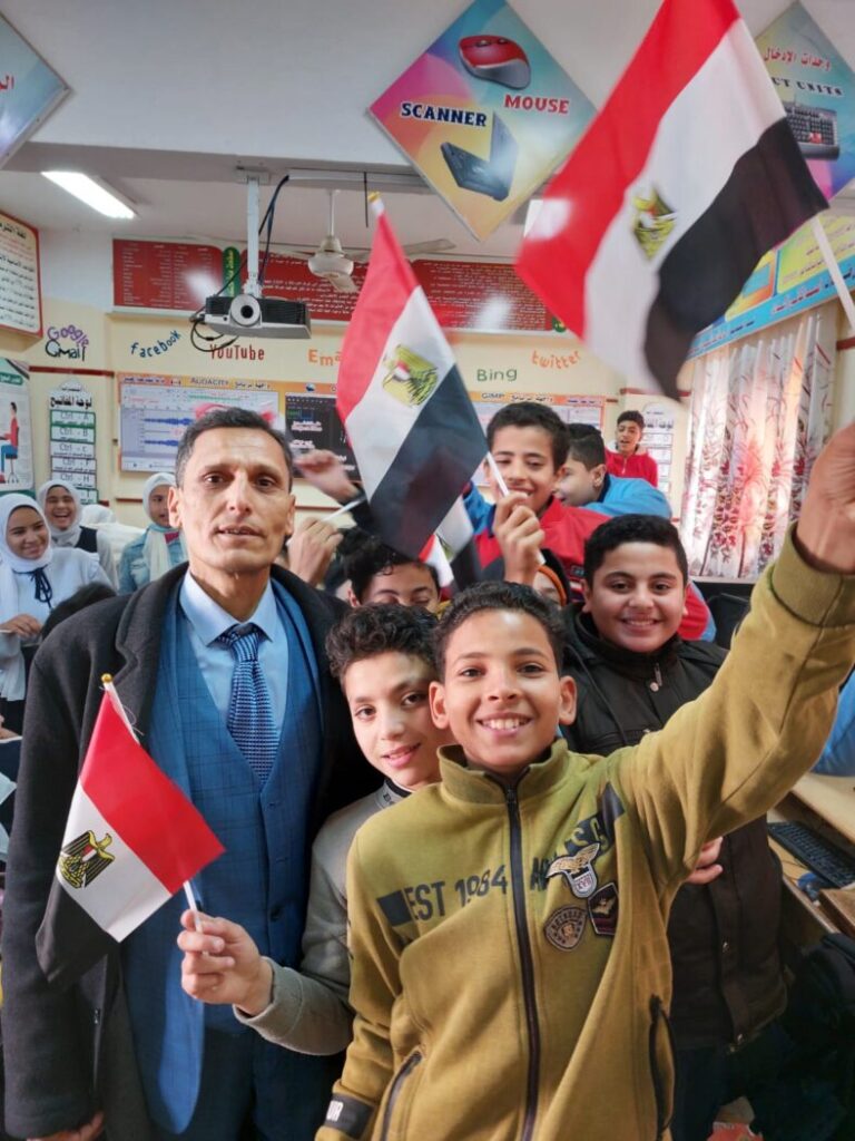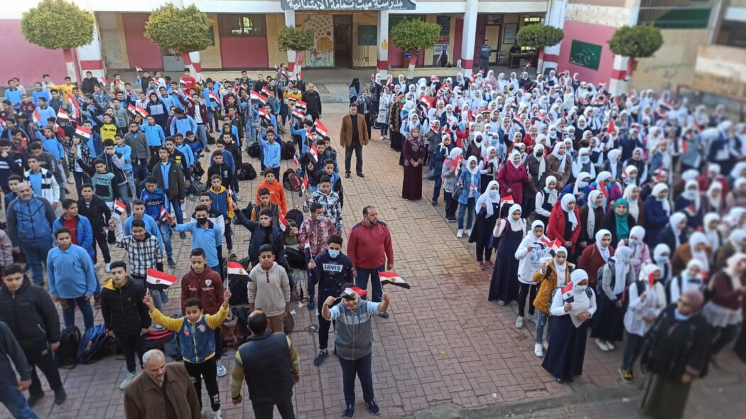 ودع طلاب مدرسة الشهيد عصام الحسيني، بقرية ميت تمامة بمحافظة الدقهلية، مدير مدرستهم “النادي إبراهيم النادي بعد بلوفه سن المعاش بالتقاط الصور التذكارية معه والاصطفاف للتسليم عليه قبل مغادرة المدرسة.