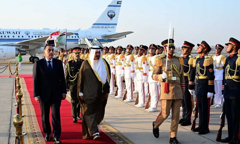 ولدى وصوله مطار القاهرة الدولي، أُقيمت مراسم استقبال رسمية لسمو الشيخ أحمد عبد الله الأحمد الصباح، رئيس مجلس الوزراء الكويت والوفد المرافق له، وشهدت مراسم الاستقبال عزف السلاميْن الوطنيين لجمهورية مصر العربية ودولة الكويت الشقيقة، أعقبه استعراض حرس الشرف، وذلك بحضور المهندس/ حسن الخطيب، وزير الاستثمار والتجارة الخارجية، والسفير/ غانم صقر على شاهين الغانم، سفير دولة الكويت لدى مصر.