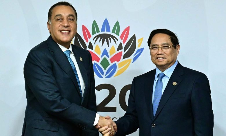 على هامش مشاركته نيابة عن فخامة السيد الرئيس عبد الفتاح السيسي، رئيس الجمهورية، في قمة مجموعة العشرين (G20) لعام 2025 بمدينة “جوهانسبرج” في جنوب أفريقيا، التقى الدكتور مصطفى مدبولي، رئيس مجلس الوزراء، اليوم، السيد/ فام مينه تشين، رئيس وزراء فيتنام، وذلك بحضور الدكتور بدر عبد العاطي، وزير الخارجية والهجرة وشئون المصريين بالخارج، والسفير/ أحمد علي شريف، سفير مصر في جنوب أفريقيا.