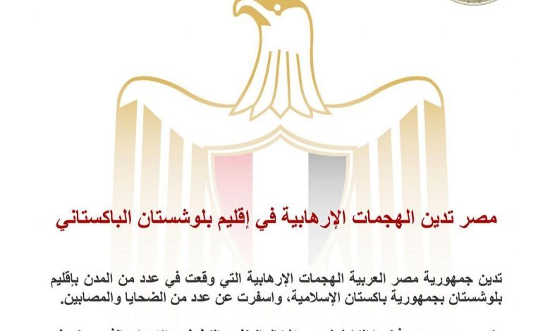 مصر تدين الهجمات الإرهابية في إقليم بلوشستان الباكستاني