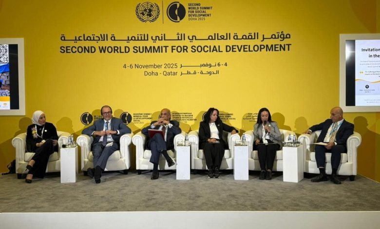 وزيرة التضامن الاجتماعي تشارك في فعالية تحت عنوان “فلسطين والحماية الاجتماعية” ضمن فعاليات مؤتمر القمة العالمية الثانية للتنمية الاجتماعية بالدوحة
