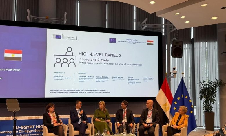 في إطار فعاليات القمة المصرية الأوروبية ببروكسل حول تعزيز القدرة التنافسية والابتكار الصناعي، شارك المهندس حسن الخطيب، وزير الاستثمار والتجارة الخارجية في الجلسة الرفيعة المستوى بعنوان “ابتكر لترتقي: وضع البحث والابتكار في قلب القدرة التنافسية”، وأدارت الجلسة السيدة بيلفي تورستي، مديرة المؤسسة الأوروبية للتدريب، وبحضور السيدة إيكاترينا زاهاريفا، المفوضة الأوروبية لشؤون الشركات الناشئة والبحث والابتكار، و منير نخلة، مؤسس و الرئيس التنفيذي MNT-Halan، و السيدة نورِيلا كونستانتينسكو، القائم بأعمال مدير مركز الابتكار والتكنولوجيا بالوكالة الدولية للطاقة المتجددة (IRENA)، وفرانك ووترز، مدير شبكة EU MED-GEM الممولة من الاتحاد الأوروبي