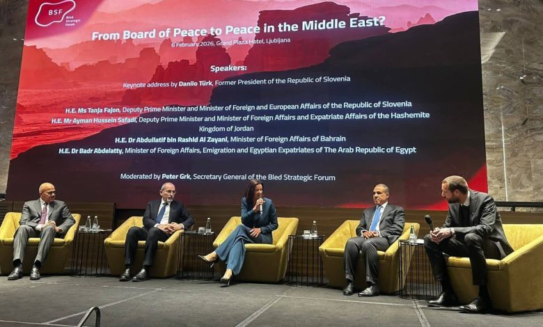 شارك د. بدر عبد العاطي، وزير الخارجية والهجرة وشئون المصريين بالخارج، اليوم في حلقة نقاشية حول توسيع آفاق السلام في الشرق الأوسط، نظمها منتدى بليد الاستراتيجي، وذلك على هامش مشاركته في الحلقة النقاشية الموسعة المنعقدة في العاصمة السلوفينية ليوبليانا.
